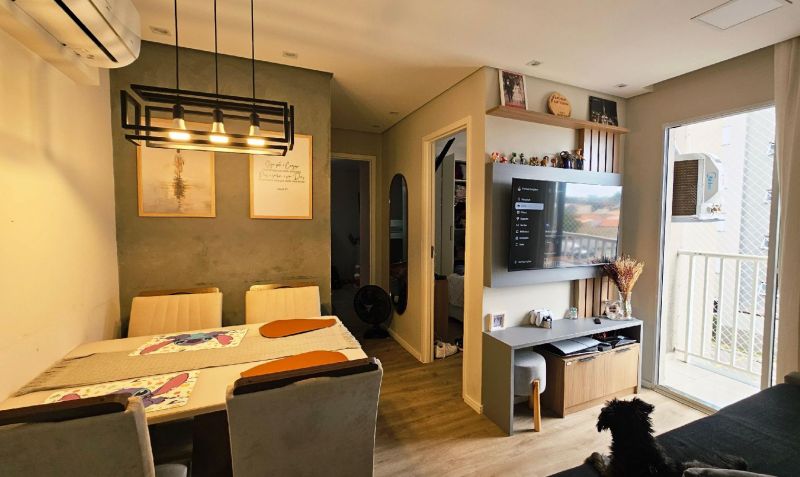 Jundiaí - Fazenda Grande - Avenida Henrique Brunini Apartamento à venda - Residencial Novo Horizonte Com 45 m² muito bem distribuídos, o imóvel conta com: • 2 dormitórios • Sala confortável • Cozinha planejada • 1 banheiro • Lavanderia • 1 vaga de garagem O apartamento é todo planejado, ideal para quem busca praticidade no dia a dia. Além disso, permanecem no imóvel: mesa com 4 cadeiras, sugar, fogão, micro-ondas, suporte para TV no painel da sala e um espelho decorativo que dá um charme especial ao ambiente.